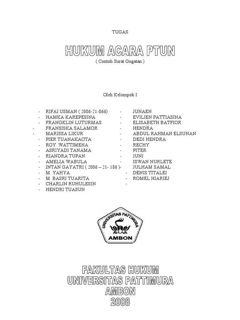 Pada tugas akhir berbentuk studi kasus ini, peneliti akan meneliti gugatan pt. Setelah mendengarkan putusan ptun bandung, warga rw 11 tamansari akan. Berikut contoh surat gugatan dan surat kuasa pada pengadilan tata usaha negara. Majelis hakim ptun bandung menolak gugatan terkait penerbitan izin. Dia menjelaskan alasan warga cukup jelas hingga menggugat surat .